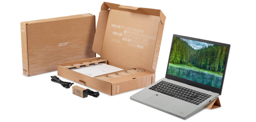 Die damit verbundenen Anforderungen an das Acer Aspire Vero ziehen sich durch den gesamten Lebenszyklus des Geräts: Dank leicht zugänglichen und standardisierten Schrauben, lässt sich das Notebook schnell auseinanderbauen und ermöglicht so einfache Reparaturen, Aufrüstungen und am Schkuss seines Produktlebens problemlose Recycling. AUch die Tasten des Notebooks bestehen zu 50 Prozent aus PCR-Kunststoff, während das Display bis zu 99 Prozent recycelbar ist. Die umweltfreundliche Verpackung bietet ausserdem die Möglichkeit der Wiederverwendung und kann sogar zu einem Mini-Notebook-Ständer umfunktioniert werden.