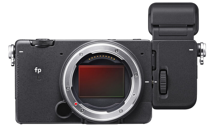 Die sehr kompakte Sigma fp L ist die mit 61 Mpx hoch auflösende Variante der bisherigen fp (24 Mpx) und äusserlich identisch. Hier ist sie mit angesetztem optionalem elektronischen Sucher abgebildet und zeigt ihr L-Bajonett und ihren Kleinbildsensor.