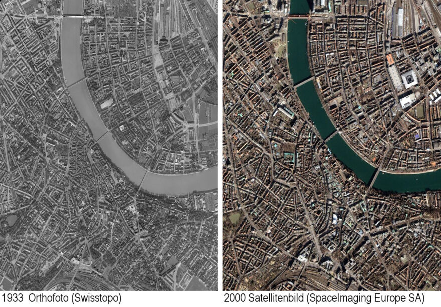 Die Ausstellung zeigt nicht nur interessante Veränderungen der Stadt Basel, sondern sie dokumentiert auch den Fortschritt der Luftbildfotografie
