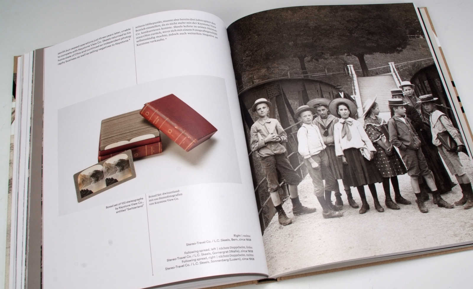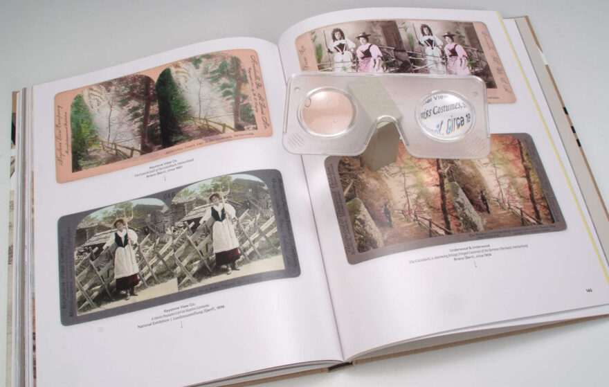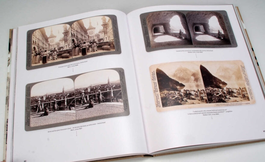 Das Buch entführt uns in eine längst vergangene Zeit, mit Landschafts- und Städteansichten, die heute fast unglaublich scheinen, mit Gletscherzungen, die längst Steinwüsten Platz gemacht haben, mit Moden und Trachten, die wir heute kaum noch finden. Es ist nicht nur herausragend, was die Bildauswahl und die Präsentationsqualität anbelangt, sondern auch die Texte sind sehr informativ und behandeln die Thematik der Stereofotografie umfassend. Mehr noch: erstmals werden uns, nach fundierten Recherchen, die wichtigsten damaligen Bilderverlage vorgestellt. So erfährt man welche Geschichten sich hinter den bekannten Namen wie Underwood & Underwood, American Stereoscopic Co. oder Keystone View Co. verbergen. Die meisten davon waren ausländische Verlage, die von den Schweizer Landschaften begeistert waren und ein breites Sortiment von Stereokarten weltweit anboten.