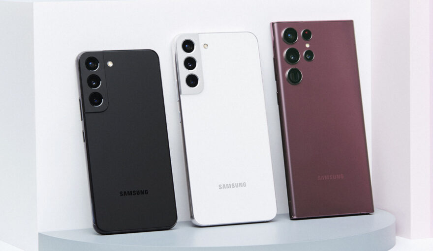 Die Galaxy-S22-Familie mit dem S22, dem S22+ und dem deutlich anders designten S22 Ultra