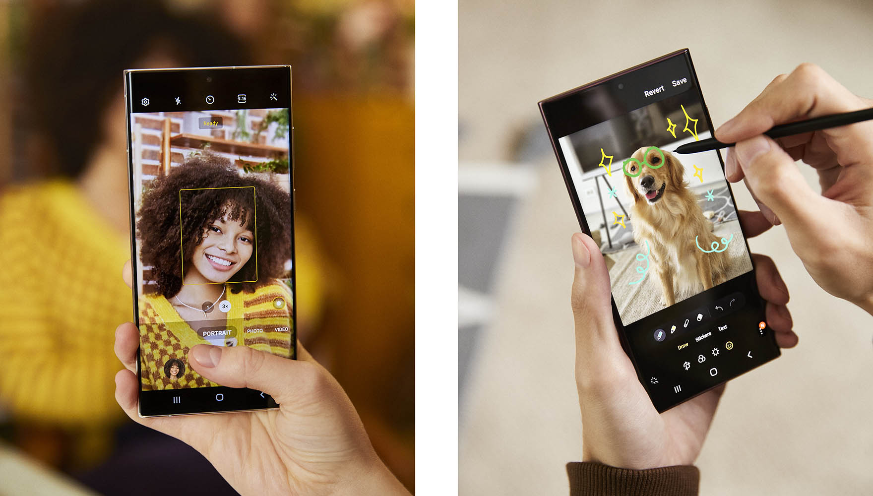 Samsungs bisher stärkste Kamera besitzt Zoom-Fähigkeiten, die einen bis zu 100-mal näher ans Geschehen heranbringen. 100X Space Zoom beinhaltet 10-fachen optischen Zoom und 10-fachen digitalen Zoom mit KI-Hochauflösungstechnologie.  Das Galaxy S22 Ultra ist mit neuen KI-unterstützten Funktionen ausgestattet. Dazu gehört der Porträt-Modus, der jedes Foto professionell aussehen lässt.