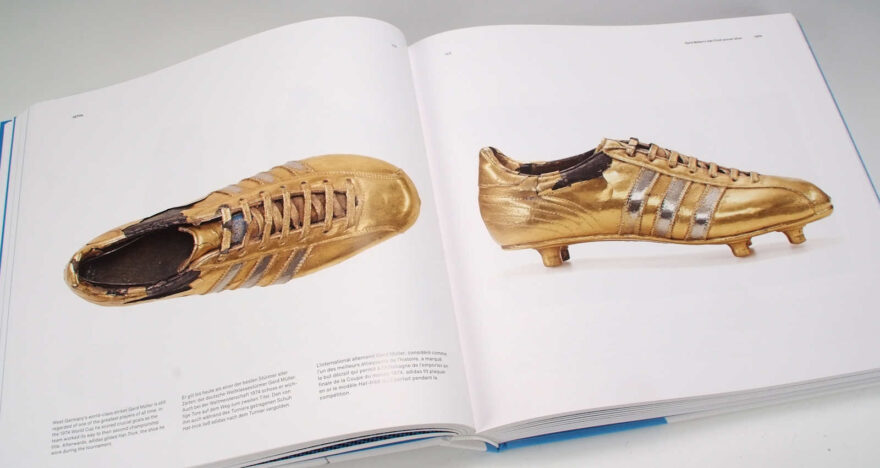 Mittels hochauflösender Reproduktionstechniken wurden den Schuhen möglichst viele Details entlockt. Alles, was man sieht, Risse, Flecken, Grasreste, verblasste Signaturen, ist echt und bringt die persönlichen Geschichten jedes einzelnen Trägers ans Licht. Der Betrachter wird in die Lage versetzt, feinste Materialdetails wie Nähte und Webstrukturen zu entdecken und die Entwicklung des adidas-Schuhs en détail nachzuvollziehen. Mit einem Vorwort vom langjährigen Designer Jacques Chassaing und fünf Expertenessays dokumentiert der Band nicht zuletzt Deutsche Sport-, Design- und Wirtschaftsgeschichte von den Anfängen der Gebrüder Dassler über die Gründung von adidas bis heute.