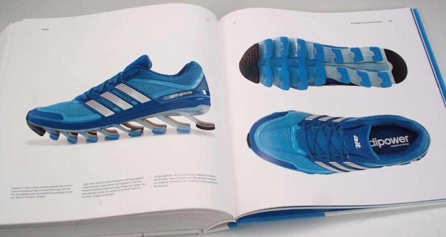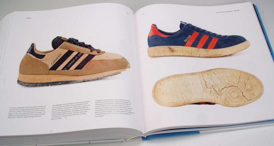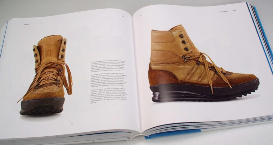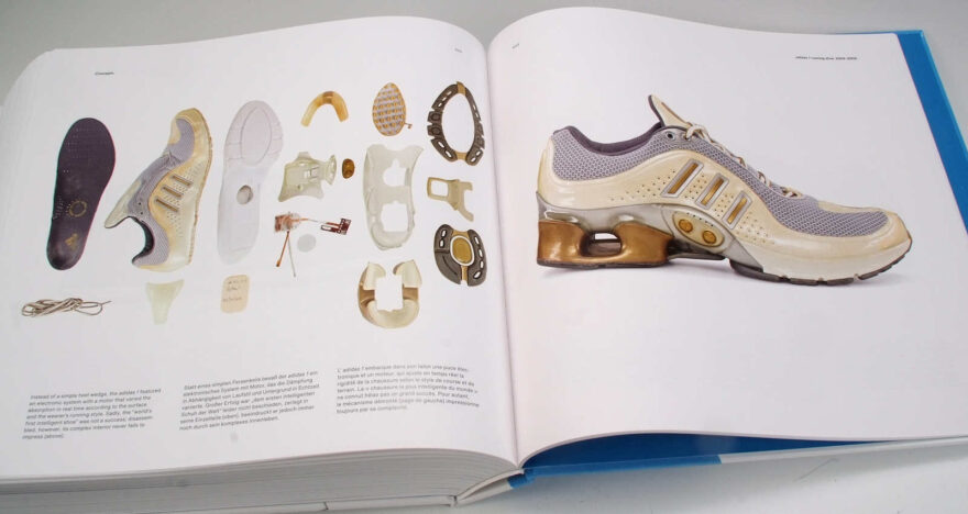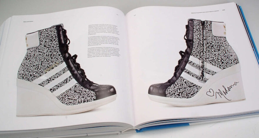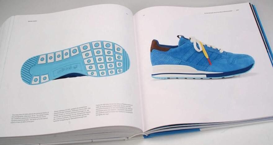 Die Vielfalt dieser Kollektion wird einem bewusst, wenn man die 644 Seiten durchblättert. Zunächst realisiert man, dass der Name adidas nicht nur eine Sportschuhmarke ist, sondern dass sich dahinter eine ganz bestimmte Philosophie und viel persönliches Engagement der Entwickler verbirgt. Jeder Schuh hat seine Geschichte, die in den Bildlegenden erzählt wird, die Sprintschuhe, mit denen Line Radke 1928 die Goldmedaille in Amsterdam gewann, das «Wunder von Bern», mit welchem dem Nürnberger Stürmer Max Morlock 1954 im Wankdorf-Stadion der wichtige Anschlusstreffer in der 10. Spielminute gelang, die Boxstiefel von Muhammad Ali, mit denen er 1971 im Madison Square Garden Joe Frazier besiegte, die Flügelschuhe von Jeremy Scott oder die hochabsätzigen Stiefel von Madonna. Hinzu kommen Prototypen, Testschuhe, Designmuster und Vintage-Modelle, die man noch nie zuvor gesehen hatte und kaum auch je – ausser in diesem Buch – sehen wird.