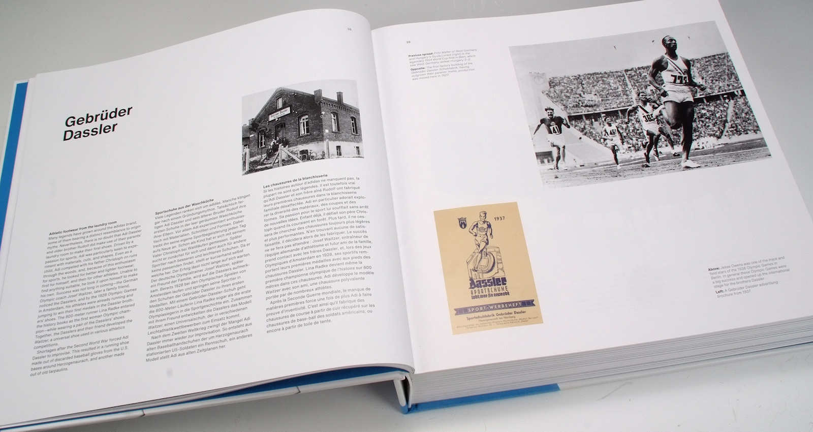 Mittels hochauflösender Reproduktionstechniken wurden den Schuhen möglichst viele Details entlockt. Alles, was man sieht, Risse, Flecken, Grasreste, verblasste Signaturen, ist echt und bringt die persönlichen Geschichten jedes einzelnen Trägers ans Licht. Der Betrachter wird in die Lage versetzt, feinste Materialdetails wie Nähte und Webstrukturen zu entdecken und die Entwicklung des adidas-Schuhs en détail nachzuvollziehen. Mit einem Vorwort vom langjährigen Designer Jacques Chassaing und fünf Expertenessays dokumentiert der Band nicht zuletzt Deutsche Sport-, Design- und Wirtschaftsgeschichte von den Anfängen der Gebrüder Dassler über die Gründung von adidas bis heute.
