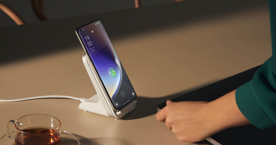 Find X5 Pro mit der kabellosen Ladestation 50W AirVOOC, die Vorbesteller als Teils ihres Geschenksets erhalten.