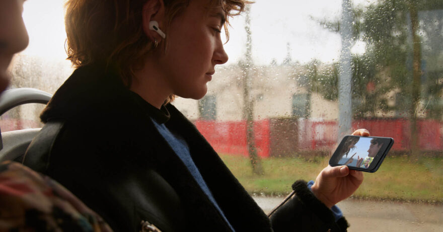 Apple iPhone SE: SharePlay ermöglicht – verbunden über Mobilfunk (5G) oder WLAN – gemeinsam Filme zu sehen.