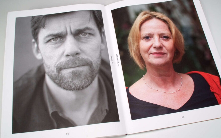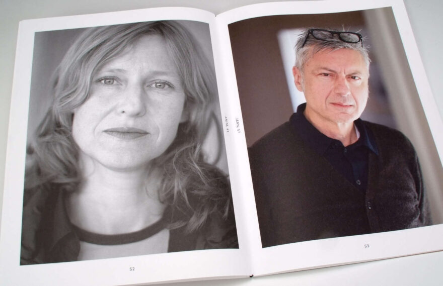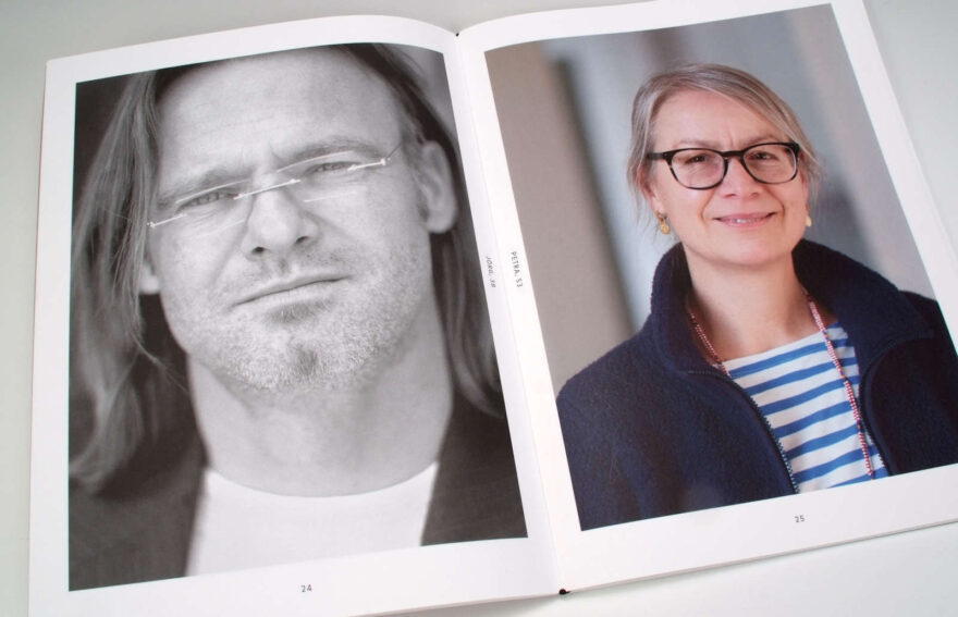 Die Texte sind ein Aspekt des Buches – ein spannender und vielfältiger. Hinzu kommen die Bilder. Auch sie sind zu unterschiedlichen Epochen entstanden, jeweils ein formatfüllendes Schwarzweissporträt vor etwa zwölf Jahren, dann von jeder Person ein Zweites, Gegenwärtiges, diesmal in Farbe, digital und mit mehr Freiraum, der das Umfeld der Person zeigt. Die beiden Bilder sind nicht einander gegenübergestellt, sondern eines davon befindet sich im vorderen Buchteil, das andere im hinteren. Vergebens sucht man ein System dieser Aufteilung – das verleiht dem Buch eine gewisse Spannung. Man vertieft sich darin.