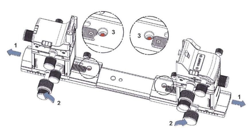 Die beiden Standarten können von der optischen Bank getrennt und platzsparend transportiert werden