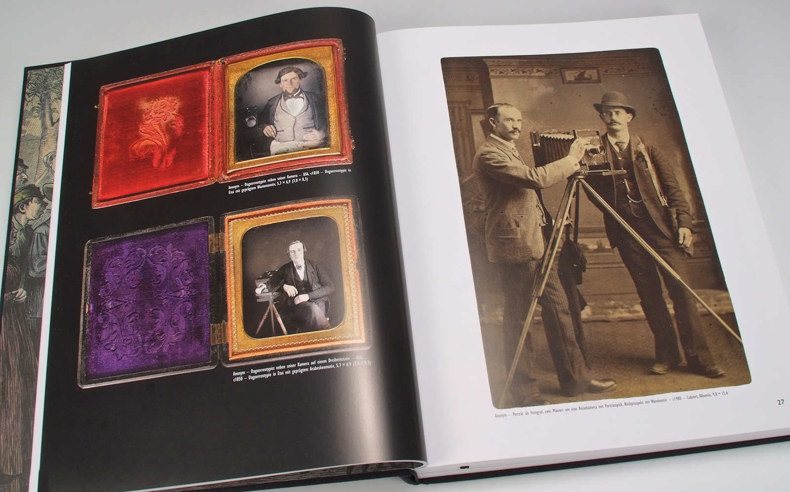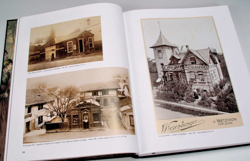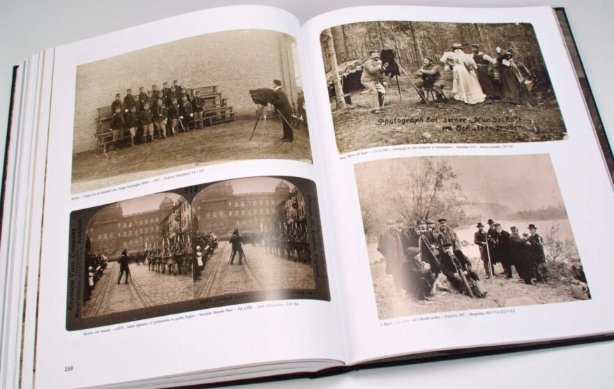 Auf Bilder, auf denen Fotografen mit ihren Kameras oder in ihren Studios zu sehen sind, stösst man nicht häufig, ebenso selten wie auf Fotos anderer damaliger Berufsdarstellungen. Sie decken im Buch den Zeitraum seit den Anfängen der Daguerreotypie von 1839 bis etwa Ende der 1920er-Jahre ab. Abgesehen vom werblichen Aspekt liessen sich solche Bilder ja nicht verkaufen. Das Gros der bestellten Fotografien waren Porträts von Einzelpersonen, dann Familienbilder und gelegentlich Städteansichten, die dann für die Postkartenproduktion verwendet wurden. Um so erstaunlicher ist der Bilderfundus «Fotografierender Fotografen», die sich in diesem Buch vereinigt findet. Wir verdanken dieses fotogeschichtlich wertvolle Material der Sammlerleidenschaft von Werner und Trudi Bosshard, die besonders für eine der bedeutendsten Kollektionen Schweizer Daguerreotypien bekannt sind. Die Sammlung fotografierender Fotografen dürfte für sie immer ein spannendes Randthema gewesen sein – Bilder also, die man auf Flohmärkten und auf Auktionen einfach noch mitkaufte, weil sie eben gefielen. Und so ist eine Sammlung eines Randgebietes zusammengekommen, die Ihresgleichen wahrscheinlich weitherum sucht.