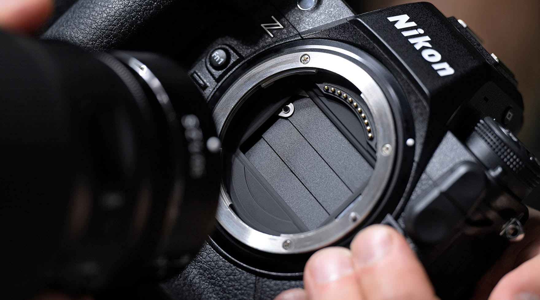 Blick auf den Schutzverschluss, der beim Objektivwechsel das Eindringen von Staub auf den Sensor verhindern soll.