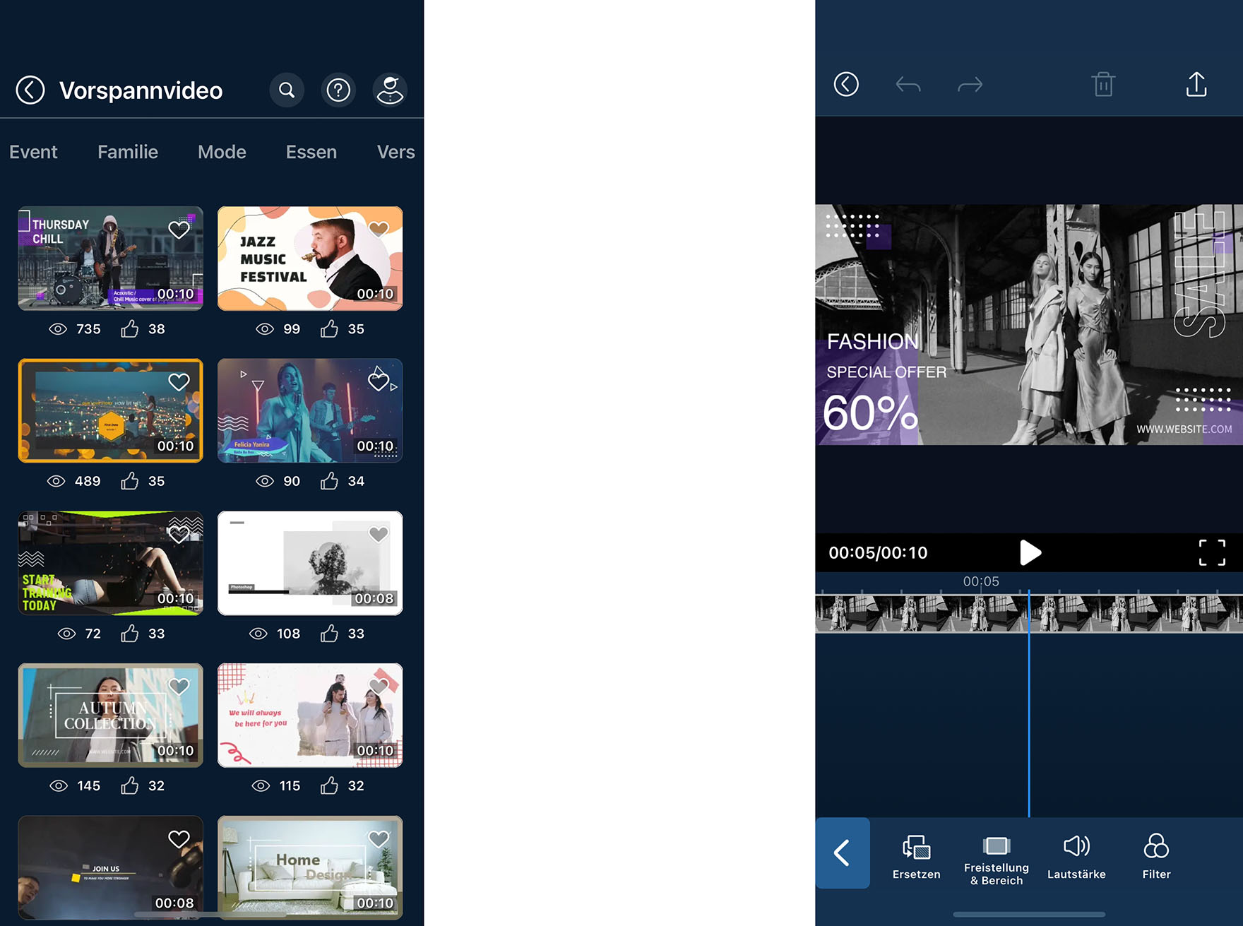 Die Vorlagen aus dem Intro-Designer können auch das private Urlaubsvideo aufpeppen. Auch für Content-Creators ist der Intro-Designer eine Zeit- und Arbeitsersparnis. Ob Food-Blogger oder Beauty-Influencer – zu jedem Thema lassen sich passende Vorlagen finden. Vor allem profitieren aber porfessionelle Anwender von der neuen Funktion. Im Handumdrehen können auch kleine Unternehmen zum Beispiel Werbevideos für ihre nächste Online-Kampagne kreieren. So finden die Anwender des Programms in der Kategorie «Mode» viele kreative Clips zum Start der neuen Fashion-Saison, die sie ganz einfach in ihr Projekt einfügen und nach ihren Bedürfnissen bearbeiten können. Wer «Sale» in die Suchfunktion eingibt, erhält diverse passende Vorlagen vom Sommerschlussverkauf bis zum Black-Friday-Template.