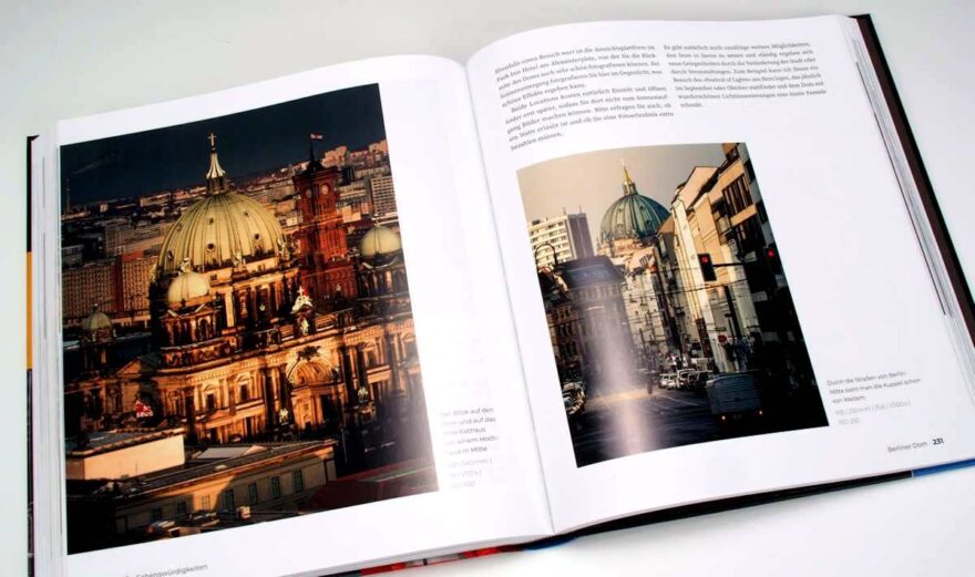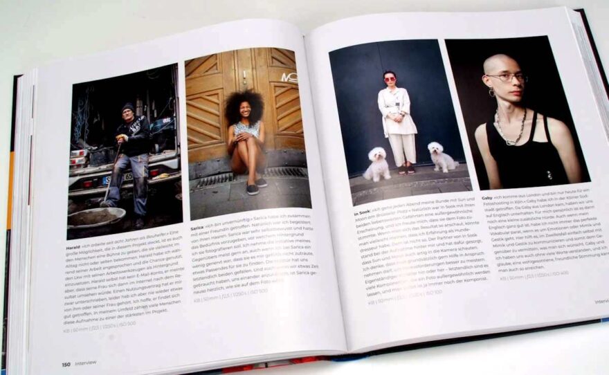 Dabei ist alles gleich vor der Haustüre. Die Stadtfotografie hat den Vorteil, dass die meisten Motive am selben Ort bleiben und dass man diese zu jeder Tageszeit und Lichtsituation wiederholt aufsuchen kann. Das gibt interessante Bildsequenzen oder es ermöglich einen das Motiv wirklich in der besten Lichtsituation zu erwischen. Oder man konzentriert sich auf die Menschen, welche das Strassenbild beleben – «Streetfotografie» ist das Stichwort. Auch damit befasst sich dieses Buch und erklärt (auf acht Seiten!) was man rechtlich darf und was man besser bleibenlassen soll. Interessant zu diesen Thema ist auch das Interview mit Michael Zellmer, der sich mit seinen Strassenporträts einen Namen geschaffen hat. Spannend, wie er dabei vorgeht und welche 10 Praxistipps er den Leser/innen mitgeben möchte. Oder es sind Christoph Kaula und Christian Wappl, die in einem weiteren Interview erzählen, worauf man bei der urbanen Tierfotografie besonders achten muss.