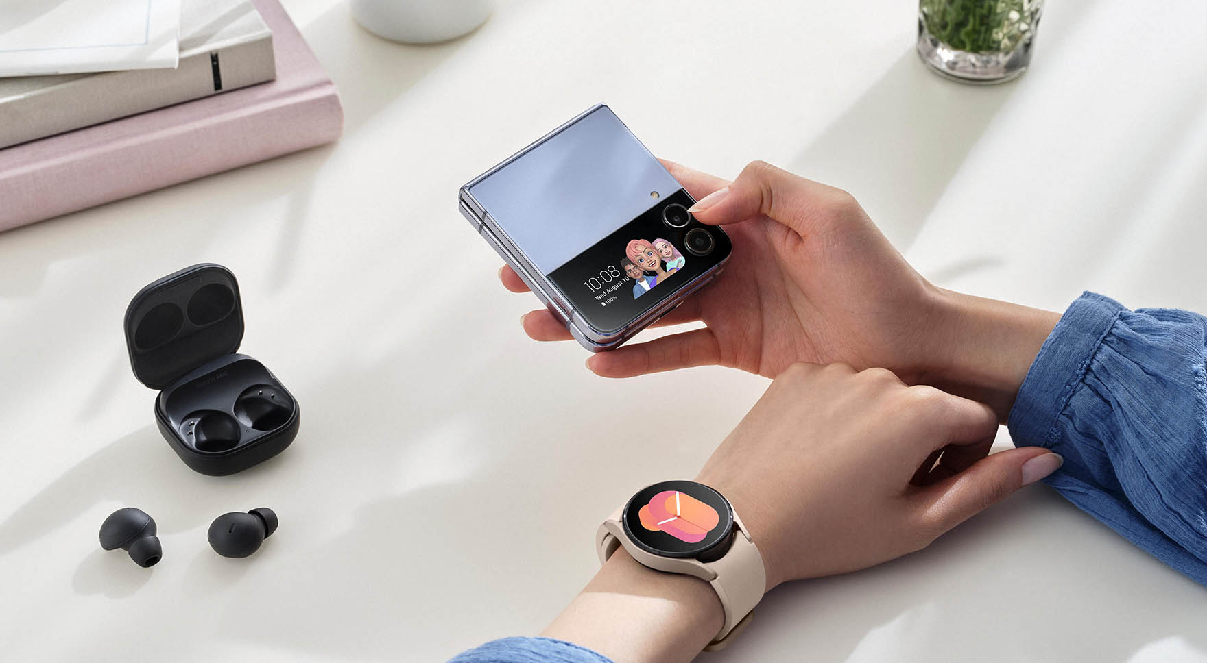 Ein schlankes Scharnier, begradigte Kanten, kontrastreiches Rückglas und der glänzende Metallrahmen geben dem Flip4 ein raffiniertes Design. Mit Galaxy-Themes auf dem Cover Screen und dem Hauptbildschirm können Nutzerinnen und Nutzer das Gerät innen und aussenvollständig an ihre Bedürfnisse anpassen und ihren persönlichen Stil mithilfe von Schriftarten, Symbolen und Designs unterstreichen. Auch das Cover Screen ist mit neuen Uhrendesigns und Hintergründen in verschiedenen Formaten wie Bildern, GIFs und Videos individuell gestaltbar. (Für Videos werden Auflösungen von 176×144 px bis 1920×1080 px, bis zu 15 Sekunden Wiedergabezeit und maximal 100MB Grösse unterstützt.)