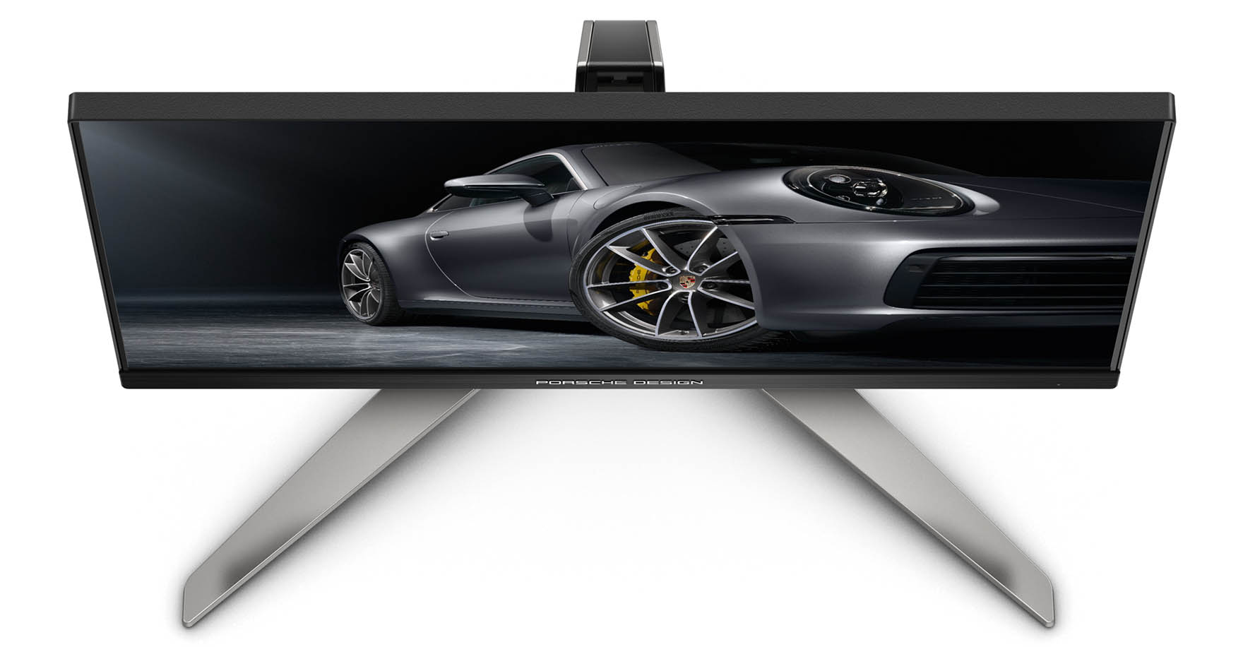 Wie bei Gaming-Hardware – von Monitoren über Computer bis zu Eingabegeräten – üblich, spielt das Design eine grosse Rolle. Typisch sind da markante, manchmal sogar martialisch anmutente Desigsn mit externen Lichteffekten. Der von Porsche Design gestaltete Monitor geht da in eine etwas andere Richtung und nimmt Anleihen beim modernen Sportwagen-Design.