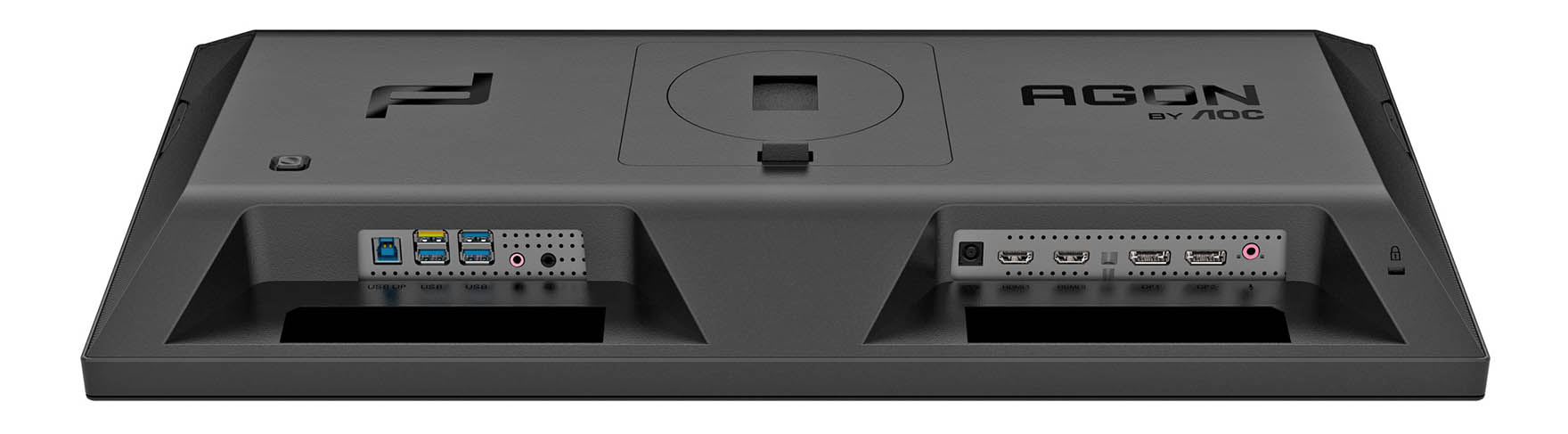 Blick von unten auf die Rückseite und die Anschlüsse des Agon Pro PD27S