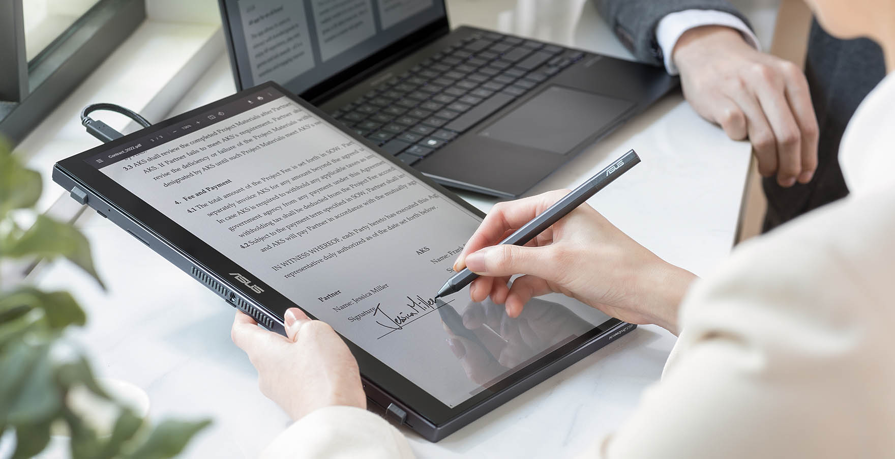 Das 14-Zoll-FHD-IPS-Panel des ZenScreen Ink bietet eine 10-Punkt-Touchfunktion und Unterstützung für aktive Stifte, wie der im Lieferumfang enthaltene Asus Pen SA201H. Damit ist dieser protable Monitor auch gut geeignet für digitale Unterschriften, Fotoretuschen, Notizen, Zeichnungen und E-Learning.
