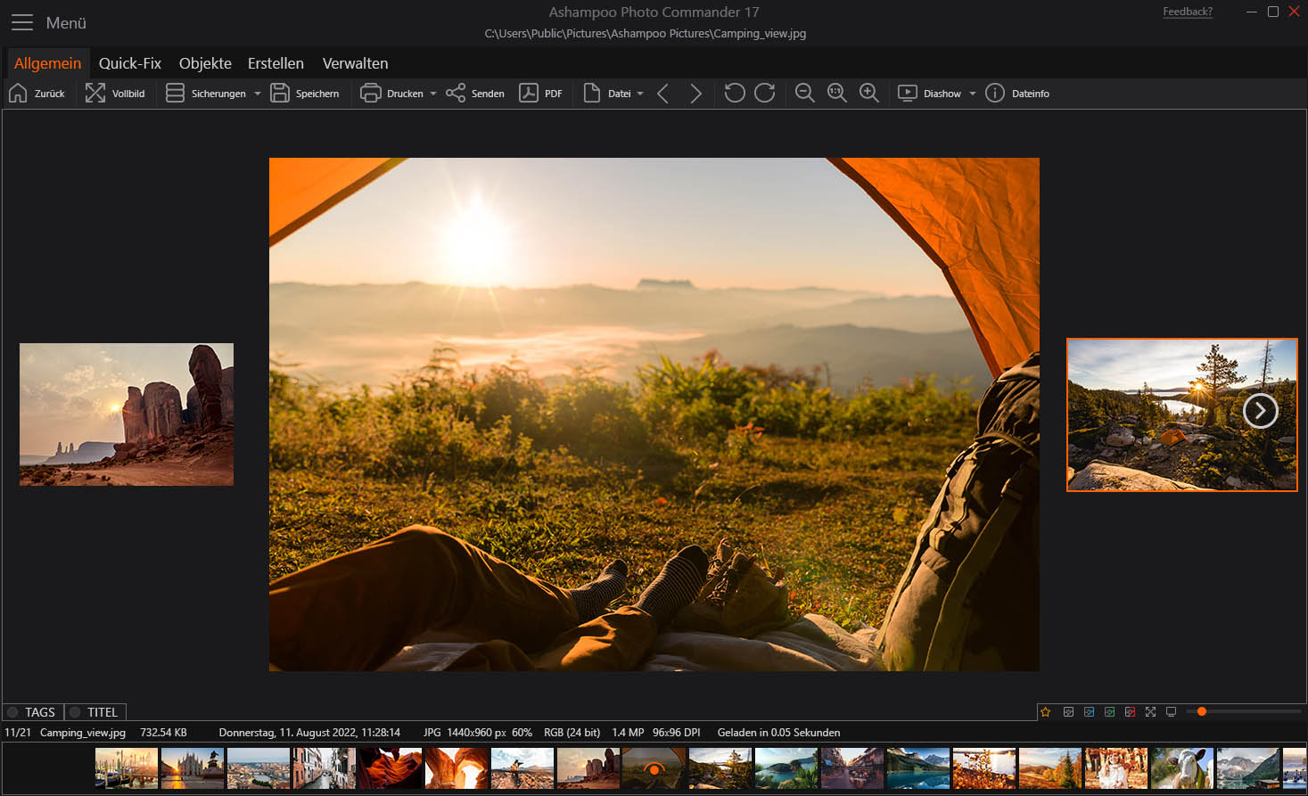 Ashampoo Photo Commander 17 ist nun voll kompatibel zu Windows 11 und erstmals nativ als 64Bit-Version am Start. Die neue Version wurde technisch generalüberholt und stark beschleunigt, JPEGs werden z.B. 40 % schneller geöffnet.