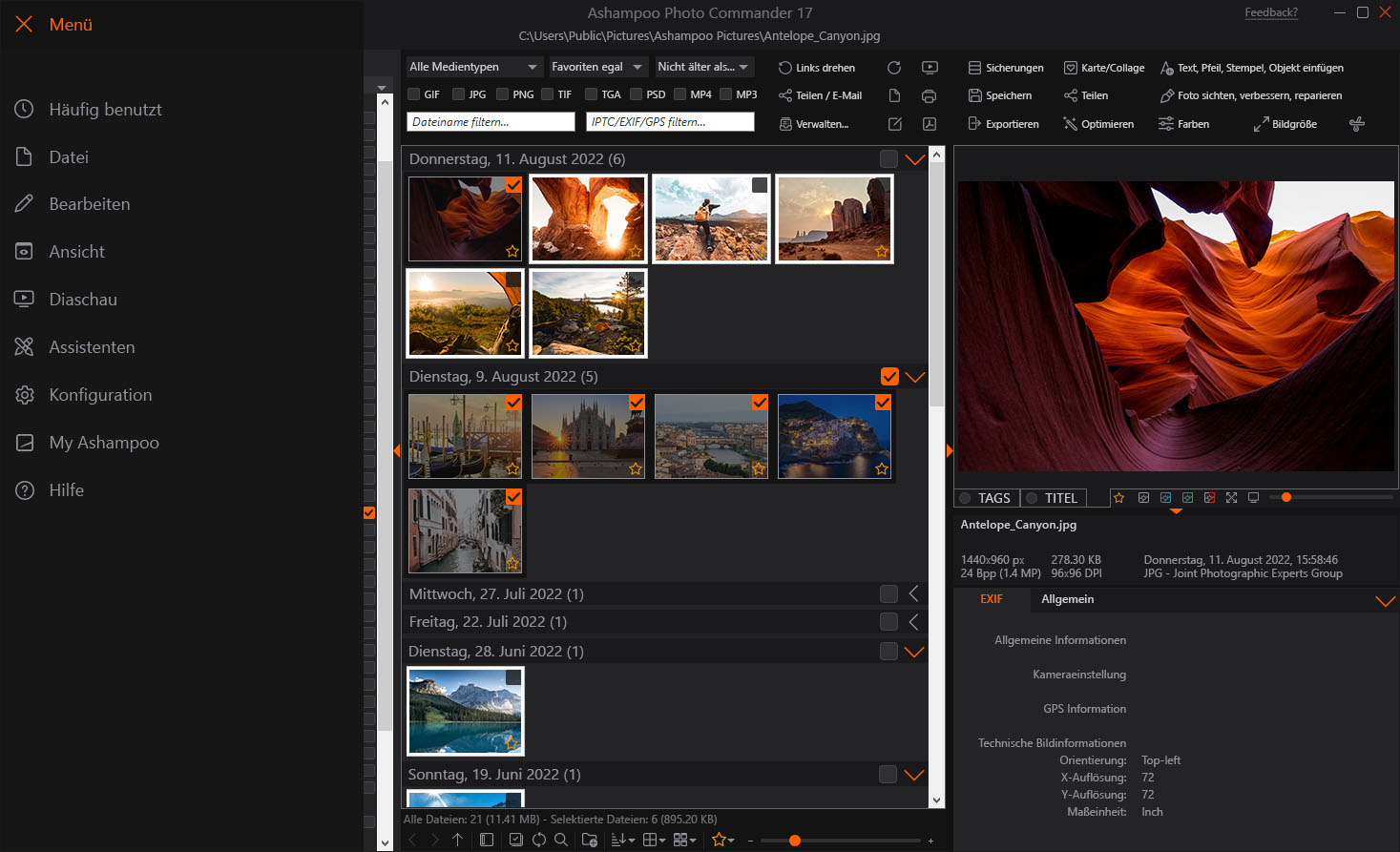 Ashampoo Photo Commander 17 ist seit dem 12. September 2022 verfügbar und kostet als Download rund 50 Euro oder 60 Franken. Das Upgrade gibt es für 24 Franken.