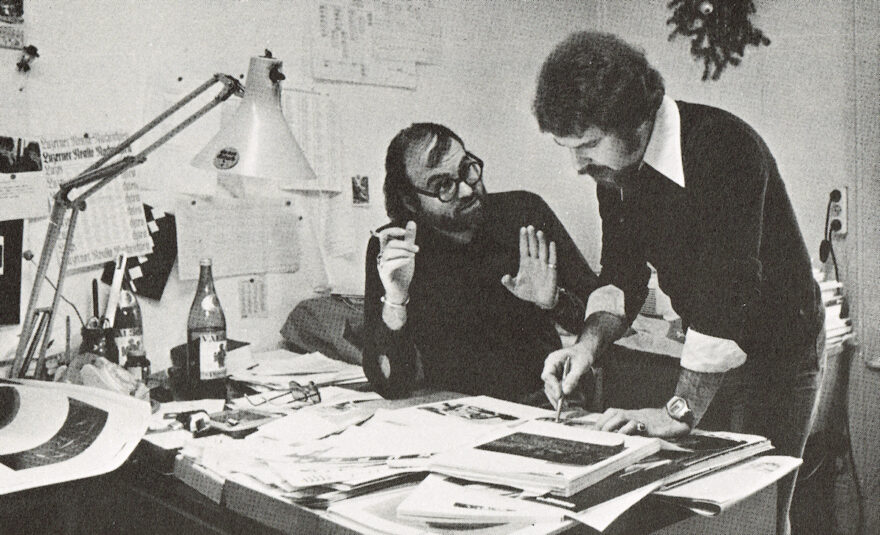 Allan Porter (links) in seinem Büro mit Grafiker Hannes Opitz (Privatsammlung)