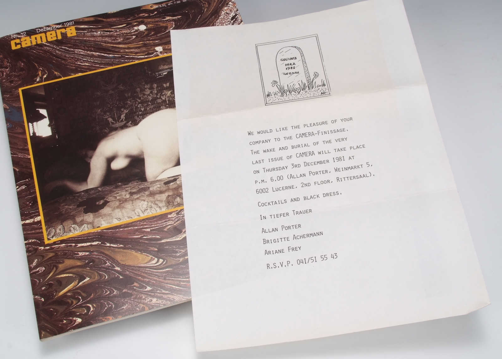 Dezember 1981, die letzte Ausgabe von «camera» und die persönliche Einladung zur «Finissage» (Privatsammlung)