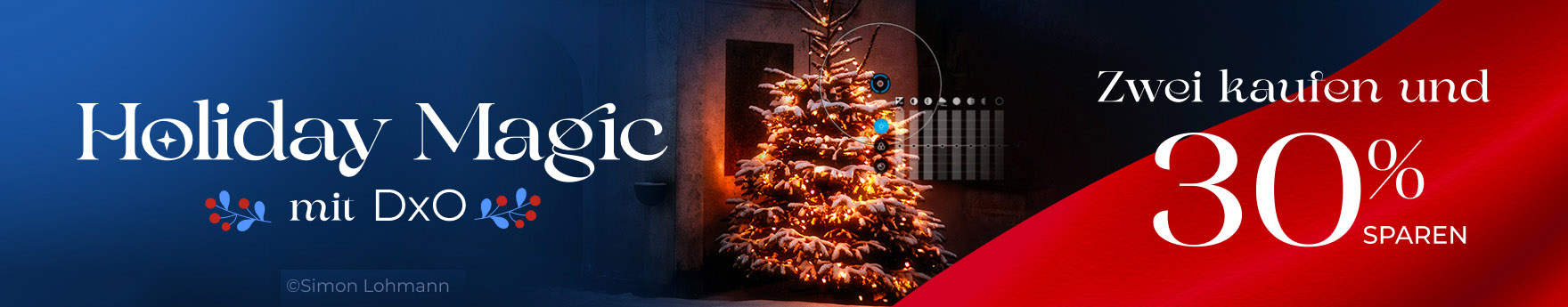 - Zudem hat DxO den ganzen Dezember 2022 über ein besonderes Weihnachtsgeschenk im Angebot: Fotografen sparen 30 % beim Kauf von zwei oder mehr DxO-Softwareprodukten