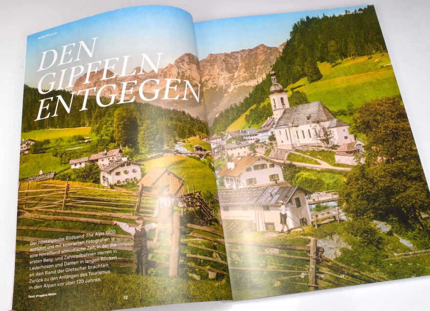 Eröffnet wird das Heft jedoch mit einer Buchvorstellung und sensationellen farbigen Landschaftsbildern, aus einer Zeit als es noch gar keine Farbfotografie gab. «The Alps 1900» heisst das Buch aus dem Taschen-Verlag (siehe auch Fotointern), das durchweg farbige Alpenbilder im Photochrome-Verfahren zeigt. Damals eine Sensation, heute nicht minder …