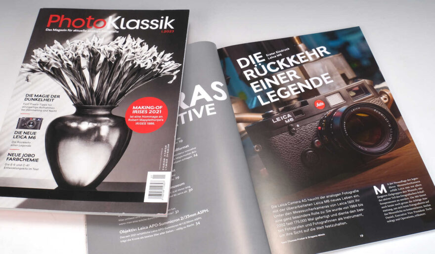 Schon die Titelseite macht neugierig. Nicht nur wegen dem bekannten Blumenstrauss von «Mapplethorpe» – aber dazu kommen wir noch – sondern vor allem wegen dem Artikel über die Leica M6. Dass Leica das Topmodell von 1984 dieses Jahr neu aufgelegt hat, ist ein Geschenk an die wachsende Analoggemeinde – da kann man gespannt sein, was PhotoKlassik dazu schreibt.