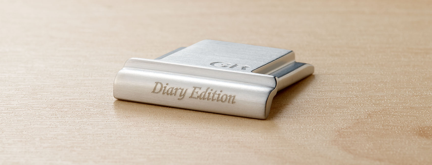 Exklusiver Gravur Service der Blitzschuhabdeckung : Die silberfarbene Blitzschuhabdeckung wird nach dem Kauf auf Kundenwunsch mit einer speziellen Gravur versehen. Zur Auswahl stehen hierfür der Schriftzug «Diary Edition» oder eine individuelle Gravur, die bei der Bestellung der Kamera konfiguriert werden kann, und entsprechend mit einer Lieferzeit nach der Fertigung geliefert wird.