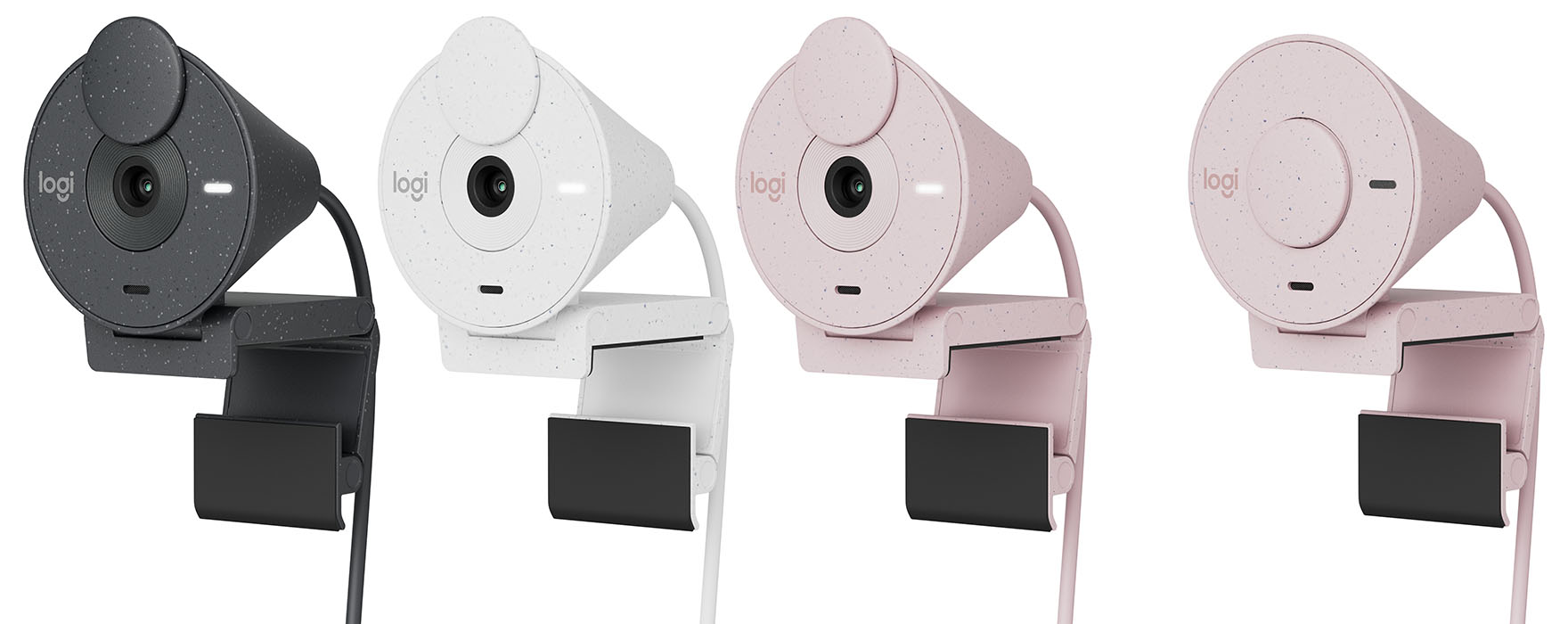Die Brio 300 Webcams von Logitech im unkonventionellen, kegelförmige Design lassen sich einfach und flexibel befestigen.
