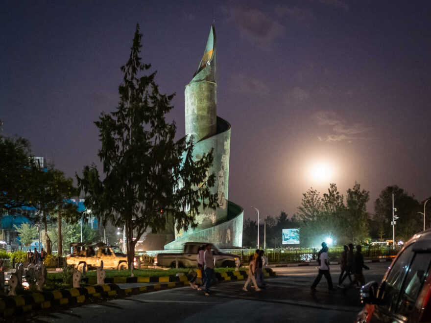Mit unglaublichen Impressionen fahren wir zurück nach Hawassa, wo uns im Zentrum das Sidama Monument im Vollmondlicht entgegen thront.