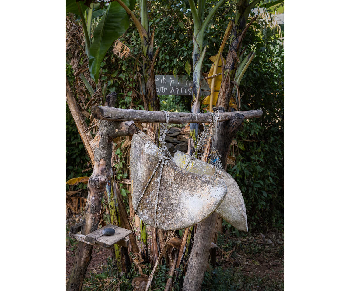 Im Innenhof fallen uns uralte «Kirchenglocken» auf, die nur aus zwei grossen Steinen bestehen. Mit einem dritten, kleineren Stein werden sie angeschlagen und geben dabei einen weitherum hörbaren, wohlklingenden lauten Ton von sich.