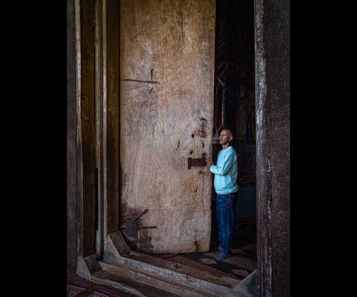 Heute Morgen trifft Patrik nach vier Jahren endlich wieder auf Menelik, dem Vertreter der «Amhara Farmers Coffee Producers Cooperative». Nach dem freudigen Wiedersehen fahren wir gemeinsam mit dem Boot zur Zege-Halbinsel, wo in einem der Klöster an der Wand ein Jahrhunderte altes Wandbildnis der Geschichte des Zege-Waldkaffees zu finden sei. Ankommen auf der Halbinsel laufen wir durch den intakten Wald einen leichten Hügel hoch zum Kloster und treffen auf Klostermauern.