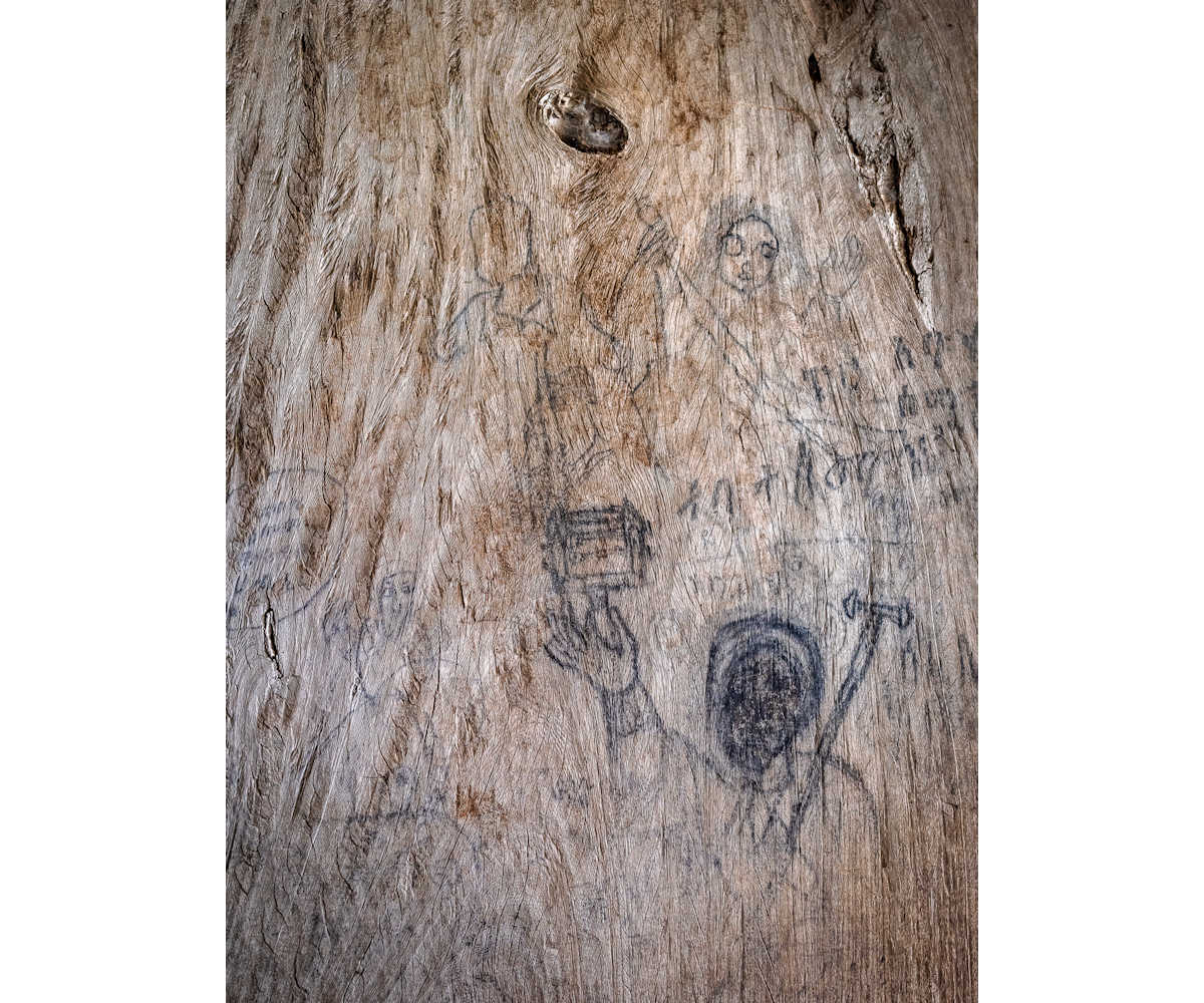 Wie die Ersteller der Bilder vorgingen, lässt sich an den Skizzen auf einer Holzwand erahnen: