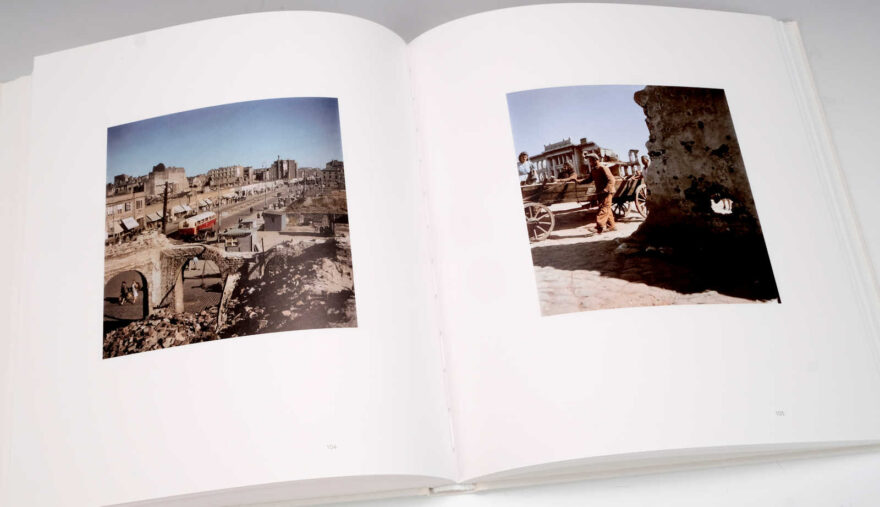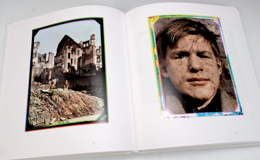 Die bisher kaum gesehen Farbbilder von Werner Bischof werden im Buch von vier interessanten Texten begleitet. Tobia Bezzola, Direktor das MASI in Lugano, leitet mit dem Text «Werner Bischof und die Farbfotografie» in das Buch ein, die französische Fotohistorikerin Clara Bouveresse befasst sich mit dem «zwiespältigen Ruf der Farbe», Luc Debraine vom Schweizerischen Kameramuseum erklärt die damaligen Techniken der Farbfotografie und Peter Pfrunder der Schweizer Fotostiftung bringt den spannenden Hintergrund an den Tag, wie das Bild des holländischen Jungen entstand, dessen Gesicht von einer Baby-Mine verunstaltet worden war. Das Bild ist auch deshalb bekannt, weil es im März 1946 auf der Titelseite der Du-Ausgabe erschien und seither als eine der Ikonen für Werner Bischofs Farbfotografie gilt.
