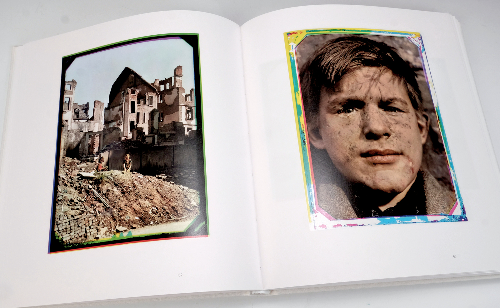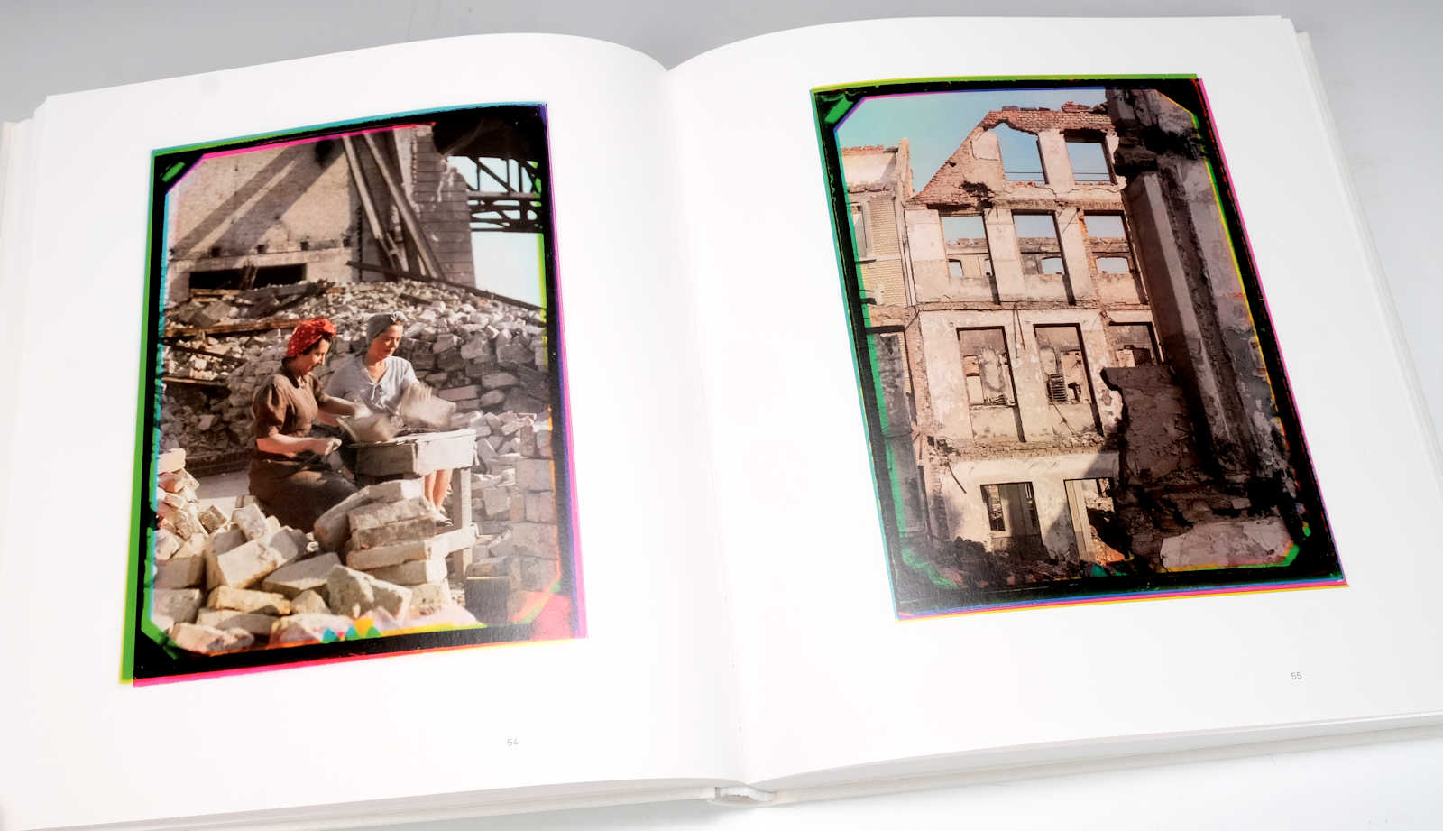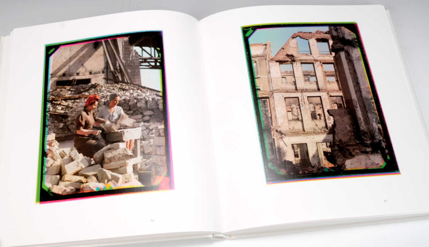 Marco Bischof, der den Bildnachlass seines Vaters verwaltet und diese eigenartigen, fast identischen drei Negative pro Aufnahme entdeckte, hat sich an Spezialisten gewandt, denen es gelang damit wieder die ursprünglichen Farbbilder zu rekonstruieren – und so ist nicht nur dieses Buch, sondern auch die Ausstellung entstanden (siehe Kasten). Glücklicherweise wurden die Farbränder an den Bildern belassen, welche für die Direkt-Farbauszüge charakteristisch sind.