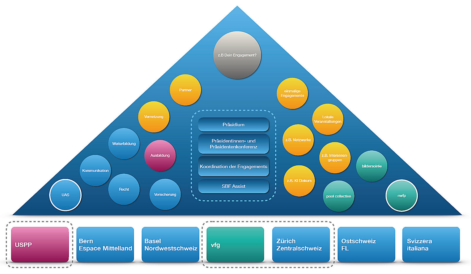 Die Leistungspyramide des neuen Verbandes vereint sämtliche bisherigen Angebote und Besonderheiten der beiden bisherigen Verbände unter einem Dach. Dazu gehören auch beispielsweise die Bildersoirées und der Nachweisförderpreis des bisherigen vfg sowie die Aus- und Weiterbildung sowie die Rechtsunterstützung, die zu den Stärken des SBF gehören.