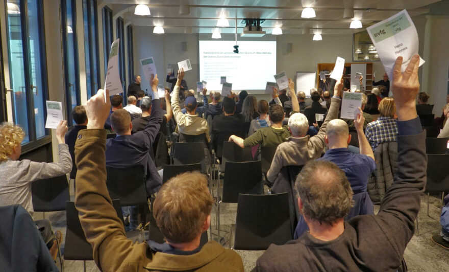 Pünktlich um 18 Uhr 30 konnte Alexander Sauer als Sprecher des Präsidialkollegiums der SBF Sektion Zürich Zentralschweiz die ausserordentliche Generalversammlung der beiden Verbände SBF und vfg eröffnen. Von den insgesamt rund 80 anwesenden Personen waren 38 von SBF stimmberechtigt, während 24 von der vfg das Sagen hatten. Alexander Sauer informierte zuerst über das bisher Erreichte sowie über das weitere Vorgehen, bevor die beiden Verbände ihre eigene Generalversammlung abhielten und dort beschlossen, ob sie der Fusion zustimmen wollen.