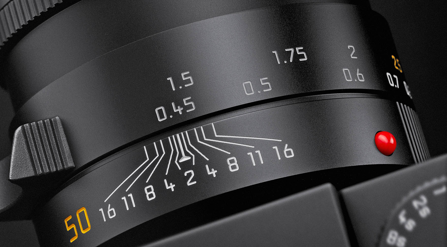 Auch die Naheinstellgrenze wurde erweitert, von bisher 70 cm auf jetzt 45 cm. Möglich wurde dies erst durch das von den Leica Ingenieuren speziell entwickelte Doppelkurvengetriebe. Dadurch konnte der Drehwinkel des Entfernungsrings im Vergleich zum Vorgängermodell stark erweitert und so das Scharfstellen über den gesamten Einstellbereich nochmals präzisiert werden. Dabei wurde weder die Baugrösse noch die Sensibilität der Fokussierung verändert, wodurch das Objektiv auch beim Scharfstellen im erweiterten Nahbereich komfortabel zu handhaben ist. Fokussieren geschieht bis zu 70 Zentimetern wie gewohnt über den Messsucher der digitalen und analogen M-Kameras. Zum Scharfstellen im erweiterten Nahbereich zwischen 70 und 45 Zentimetern muss nach einem dezent spürbaren Widerstand der Live-View am Bildschirm, der Visoflex oder die Mobile-App «Leica FOTOS» genutzt werden.