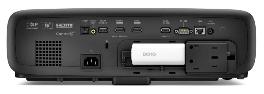 Zwei 5 Watt Lautsprecher hat der W4000i von Haus aus. Zudem liefert er alle wichtigen Anschlüsse für die nahtlose Einrichtung in die Heimkinoanlage, wie z. B. HDMI eARC, für besten Surround-Sound mit Dolby Atmos. Zur Integration des W4000i in ein Smart Home wird der Control4 Standard unterstützt, mit dem, vom Beamer bis zur AV-Anlage, alle Funktionen über eine Fernbedienung gesteuert werden können.