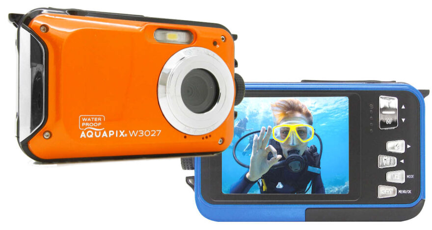 Von Easypix gibt es die preisgünstige und einfach zu bedienende Unterwasser-Kamera Aquapix W3027 «Wave» für Fotos und Videos in HD-Qualität. Ideal für das Fotoerlebnis am Sandstrand, beim Plantschen oder beim Schnorchelgang bis 3 Meter Tiefe. Es gibt sie in «Marine Blue» oder «Sunset Orange».