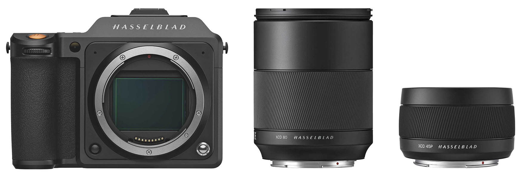Das «Hasselblad X2D 100C Lightweight Portrait Kit» besteht aus der spiegellosen Mittelformatkamera X2D 100C und den beiden Objektiven XCD 1,9/80 und XCD 4/45P, die auf das Kleinbildformat bezogen einem 63mm und einem 36mm entsprechen.