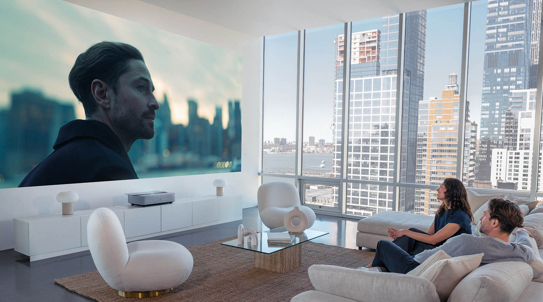 Der «Leica Cine 1» ist ein Kurzdistanzprojektor und wird direkt vor der Projektionsfläche platziert. So läuft auch niemand mitten durch das Bild beim Heimkino- oder TV-Abend.