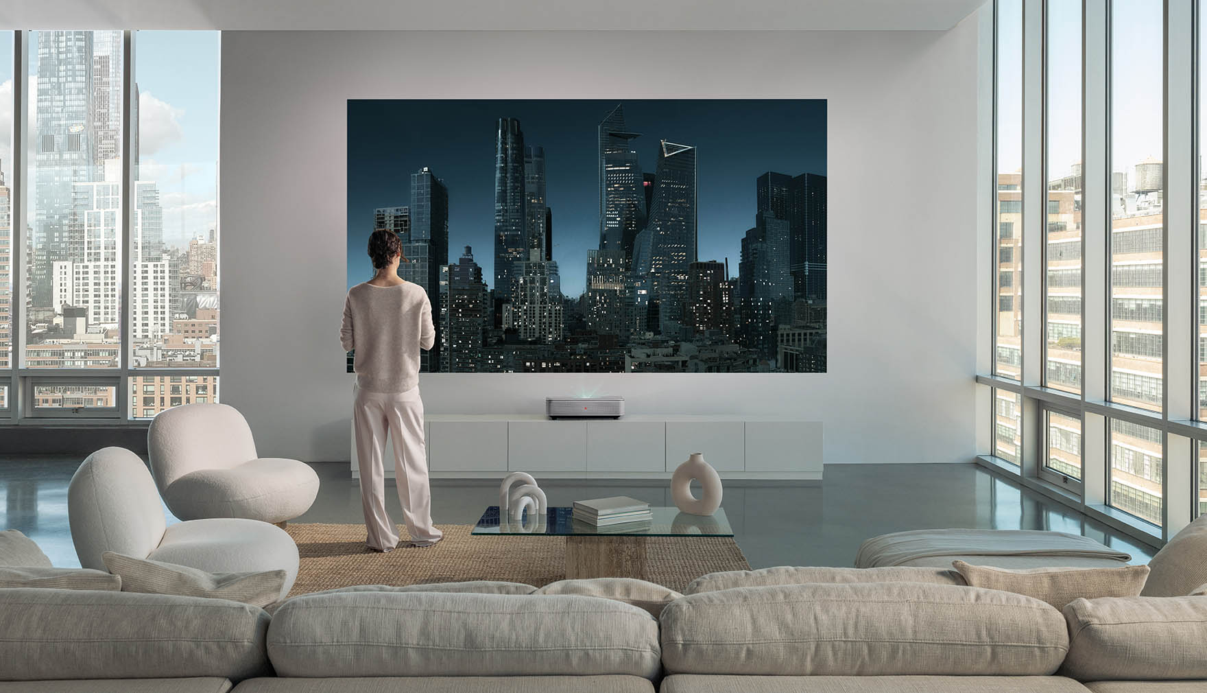 Dank Ultrakurzdistanz-Objektiv lässt sich der Cine 1 in kurzem Abstand zur Wand platzsparend im Wohnraum integrieren und fügt sich mit seinem edlen Aluminiumgehäuse im authentischen Leica Look als klassisches Designobjekt elegant in das Interieur ein.