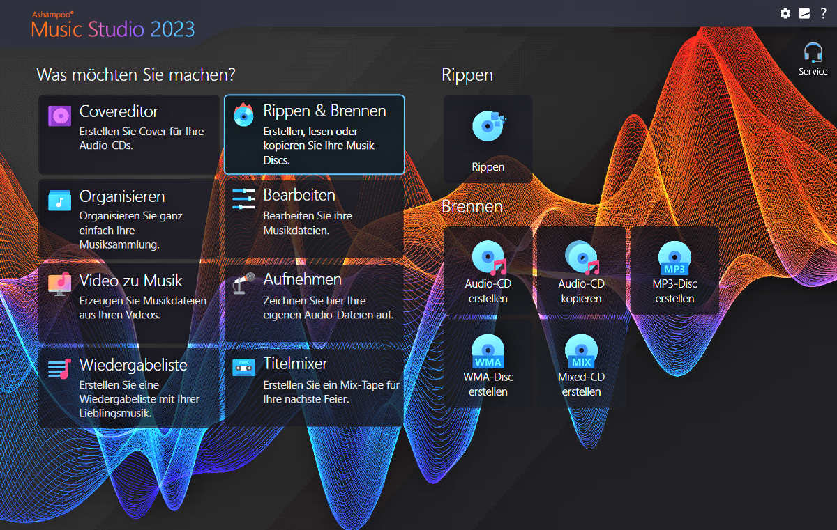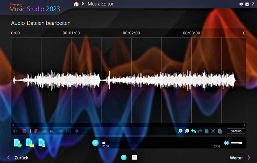 Mit Ashampoo Music Studio 2023 ist das Bearbeiten, Organisieren und Mischen von Audiodateien wesentlich einfacher geworden und erfordert kaum noch Vorkenntnisse. Das Programm ist nahezu selbsterklärend und das fertige Projekt kann direkt auf CD oder DVD gebrannt und mit einem passenden Cover versehen werden.