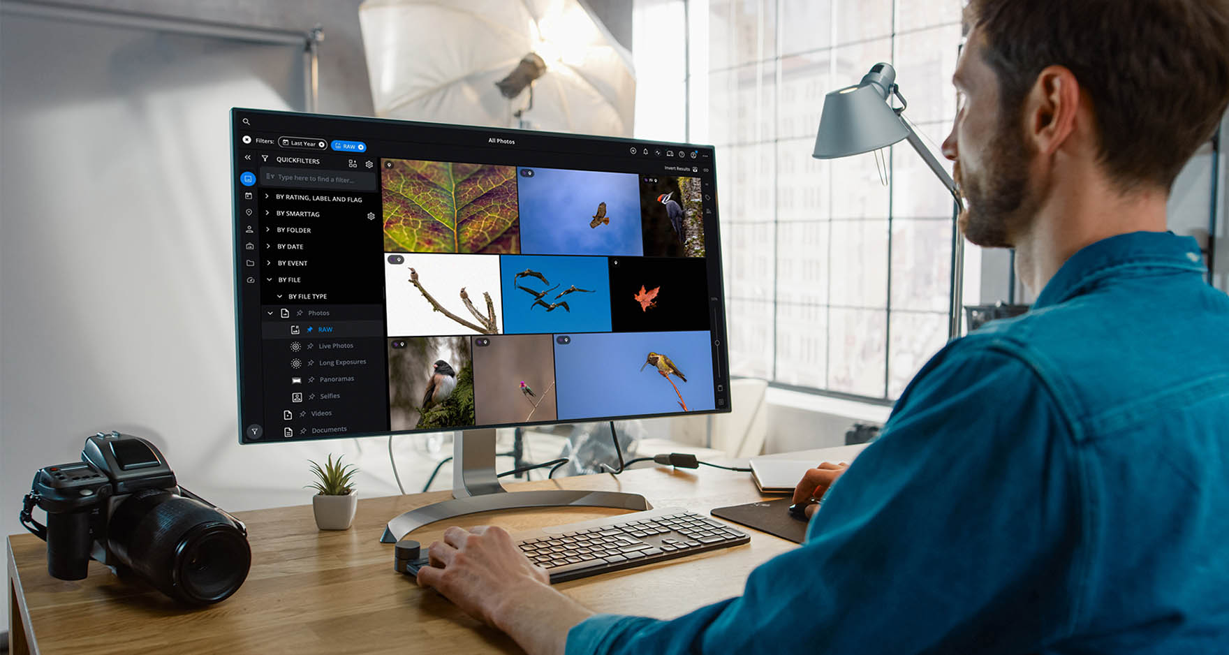 Mit dem neuen Tool «QuickFilters; können Fotografen nach Bildern und Videos auf der Basis von visuellen Eigenschaften, Bildqualität, Kamera- und Objektivtypen, Kategorien (Reise, Arbeit, Privat, etc.), Aufnahmezeitpunkt und anderen Metadaten suchen. Diese neue Funktion wurde speziell für Kreative mit umfangreichen Medienbibliotheken auf verschiedenen Geräten wie Kameras, Festplatten, Speicherkarten und Cloud-Speicher entwickelt. Fotografen können anhand von EXIF-Daten und visuellen Eigenschaften (Details zu Bildern, Kameras, Objektiven und mehr) schnell das perfekte Foto finden und mithilfe von anpassbaren Bereichssteuerungen für die meisten Kameraeinstellungen filtern.