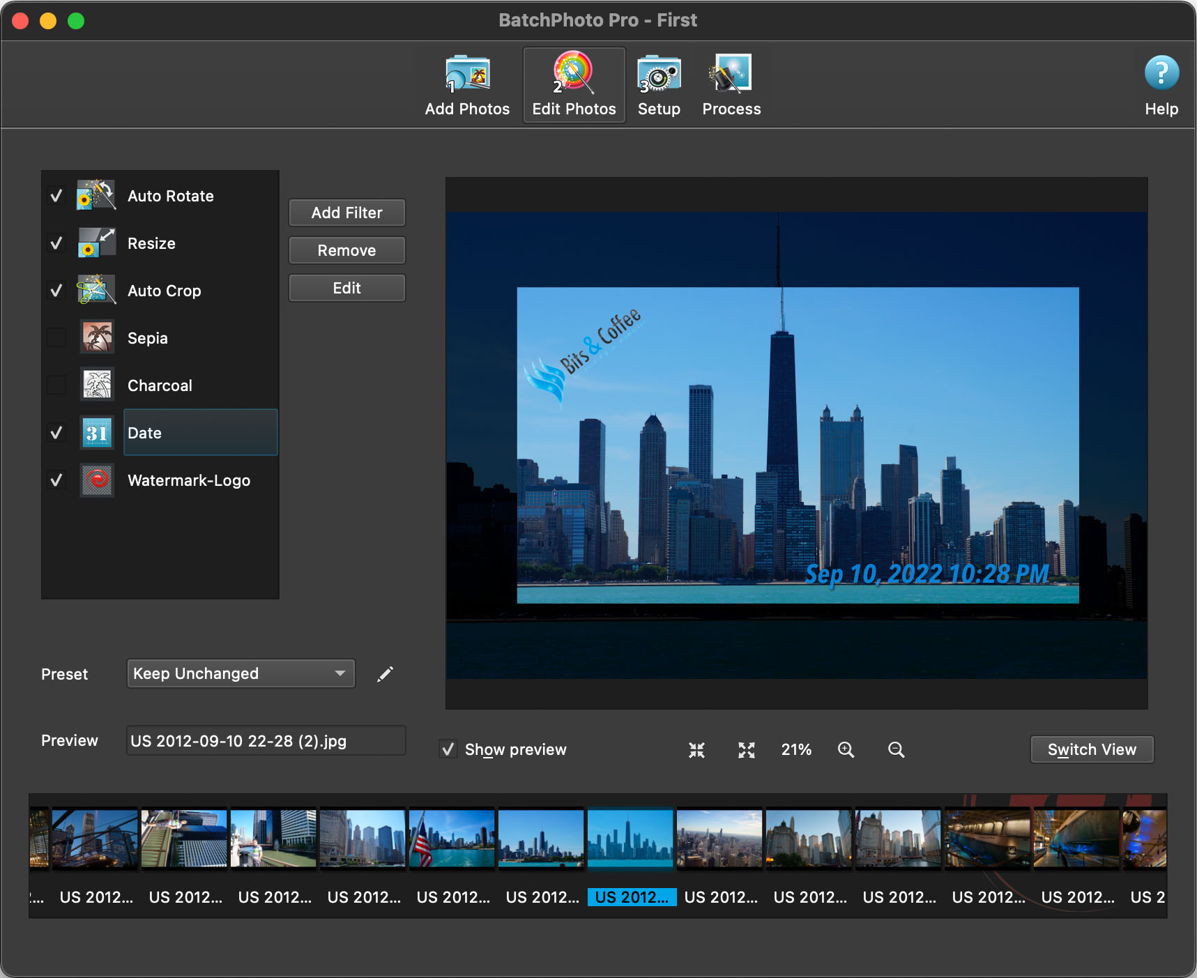 BatchPhoto ist ein einfaches Fotobearbeitungsprogramm für die Mac- und die Windows-Plattform. Wie es der Name der Software deutlich macht, wurde das Programm für die Stapelverarbeitung (Batch Processing) von Fotos konzipiert. Es ist also ideal, wenn man nach einem grösseren Photo Shoot, nach dem Urlaub, nach einem Fotoanlass oder für einen bestimmten Zweck (z.B. Website, Social Media) viele Fotos einer einheitlichen Bearbeitung (z.B. Kontrast, neue Bildgrösse) unterziehen, sie in bestimmte Dateiformate (z.B. Raw zu JPEG) konvertieren oder mit Anmerkungen (z.B. einem Wasserzeichen) versehen will.