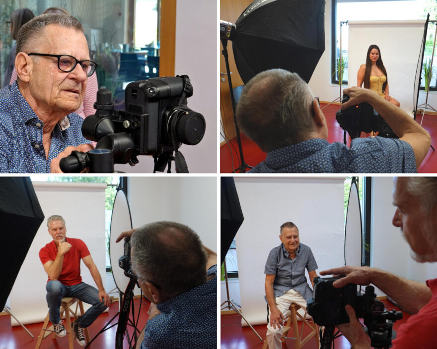 Als besondere Attraktion kamen die Anwesenden noch in den Genuss einer Live-Demonstration, in dem Jost einige Gäste im improvisierten Studio mit der Lochkamera porträtierte. Alles war perfekt ausgetestet, ein grossflächiger Blitz war das Hauptlicht und ein Aufheller sorgte für durchzeichnete Schatten – mehr braucht es nicht. Anders als zur Urzeit der Fotografie, konnte das getetherte Ergebnis gleich mit Applaus auf den Laptop betrachtet werden.