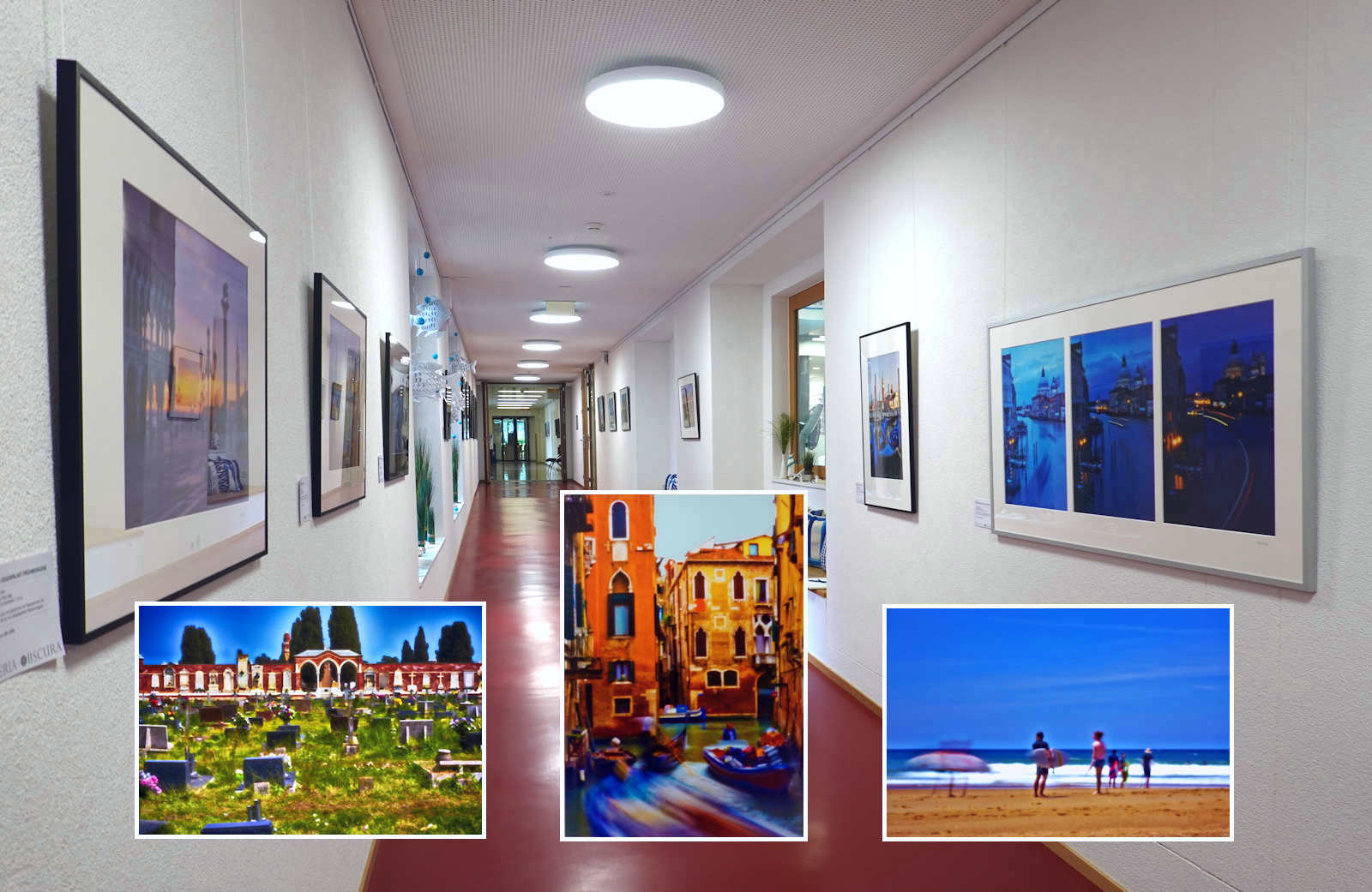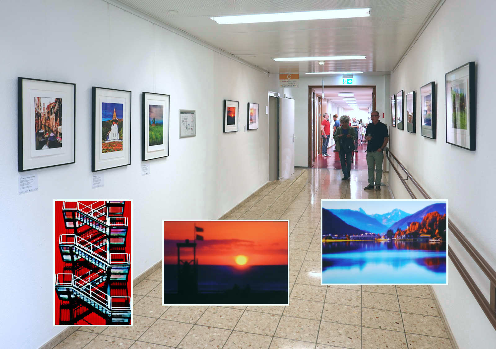 In den Gängen des Gesundheitszentrum Dielsdorf sind die Lochkamerabilder von Jost J. Marchesi noch bis 13. September 2023 zu sehen