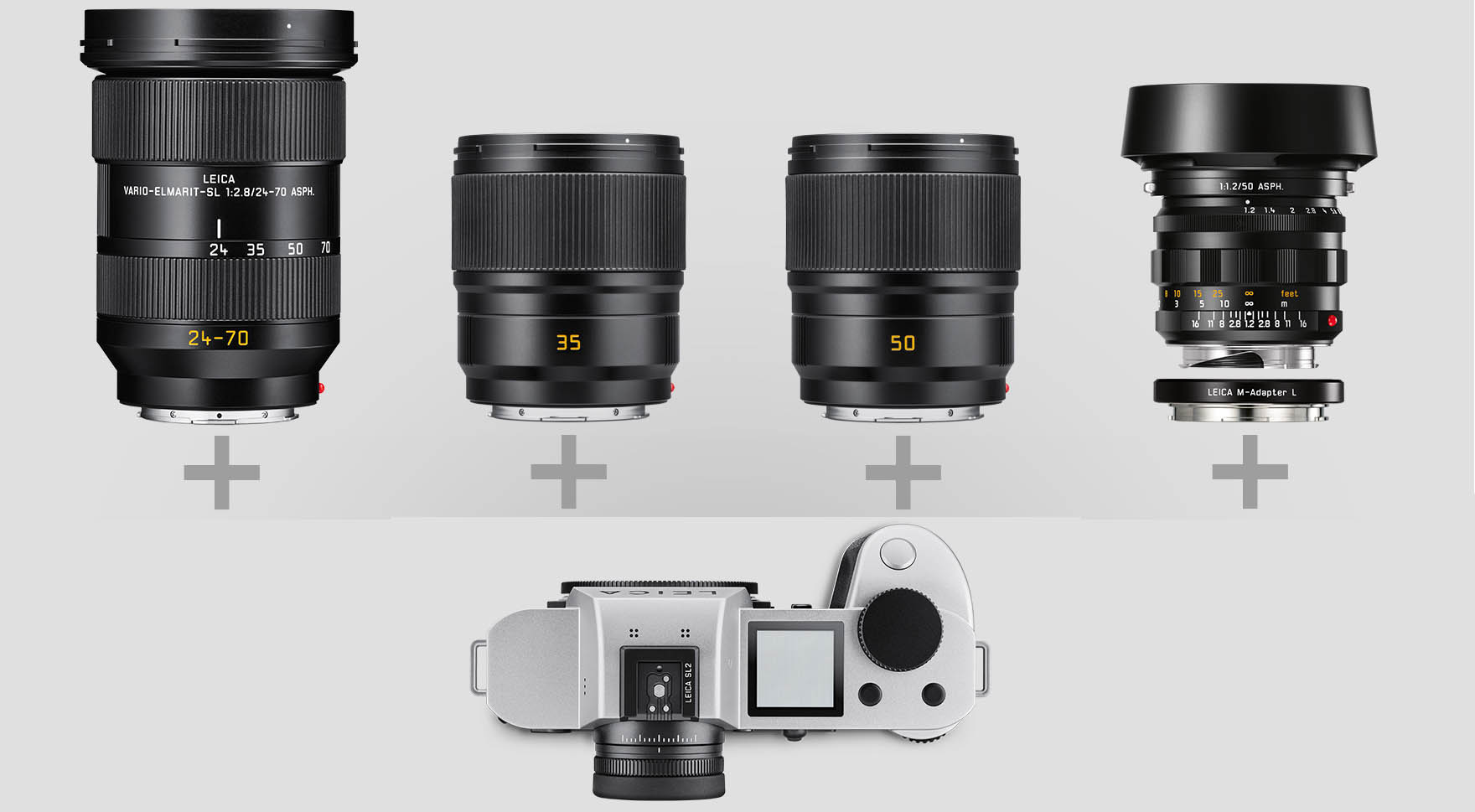 Neu stehen vier Kits zur Wahl, drei davon mit einem Objektiv aus dem SL-System und auch eines mit einem manuellen Objektiv des M-Systems. Zu letzterem gibt es den passenden Adapter dazu.
